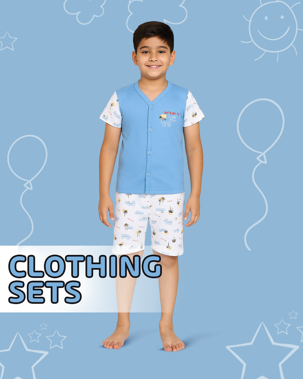 white-skyblue Printed Double Top Pant for Boys by Todos
