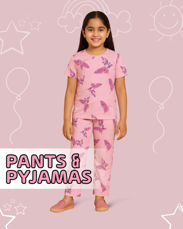 Pink Printed Top Hot Pant Set for Girls by Annie