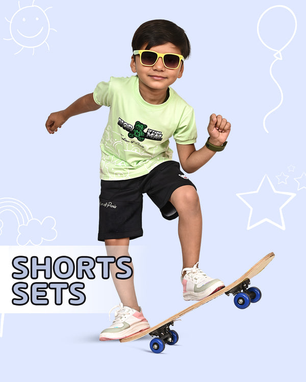 Green Printed T-Shirt Pant Set for Boys by Todos