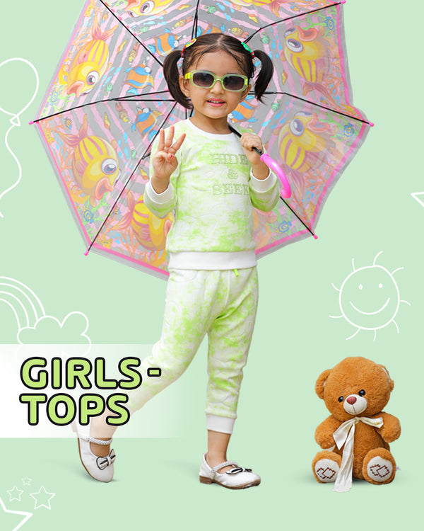 Sea Green Printed Drop Shoulder Top for Girls by Biskid