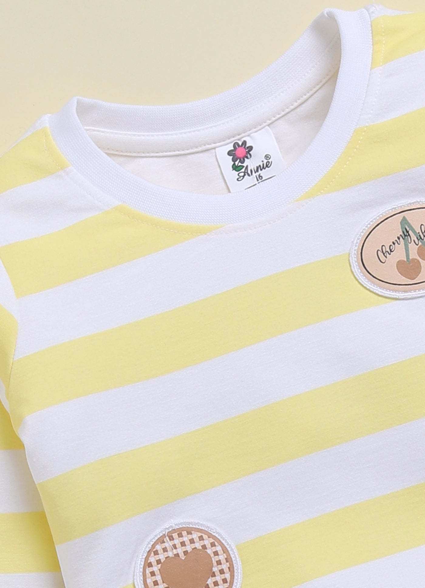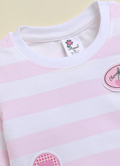 Annie Kids 100% Lyocell Knit to Knit Full Sleeves Stripes Pre Winter Top & Pant - Pink