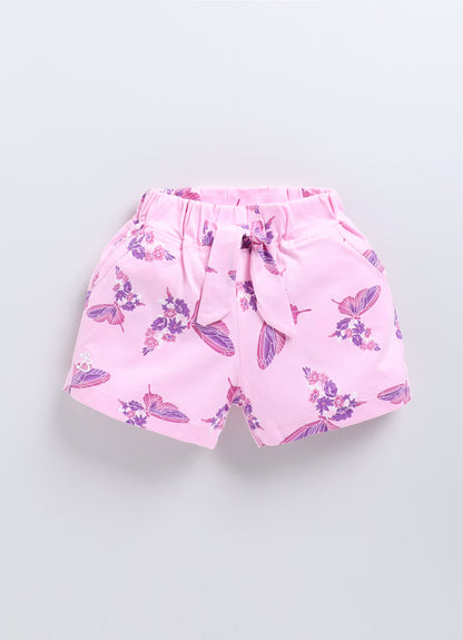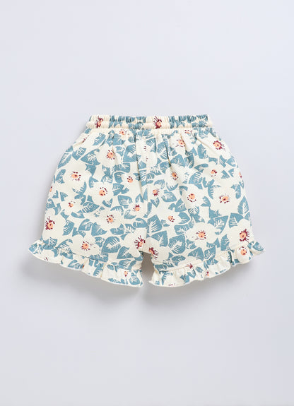 Beige Blue & Brown Printed Shorts for Girls by Biskid