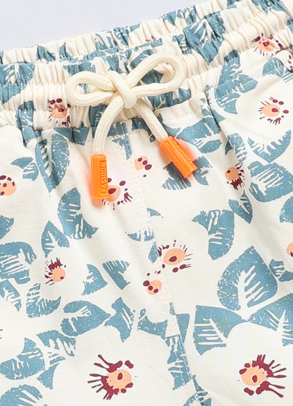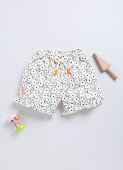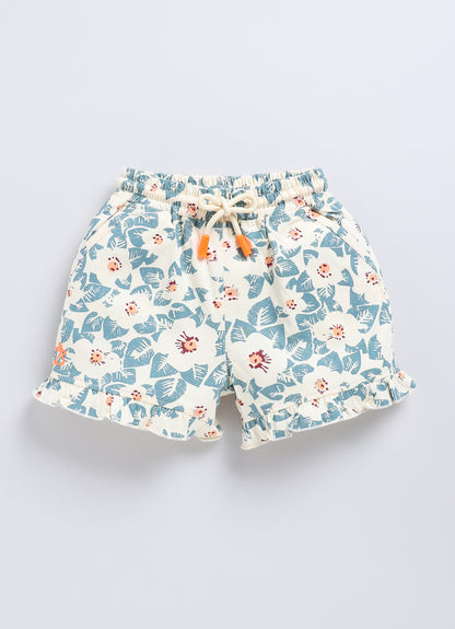 Beige&Blue Foral Printed Shorts for Girls by Biskid