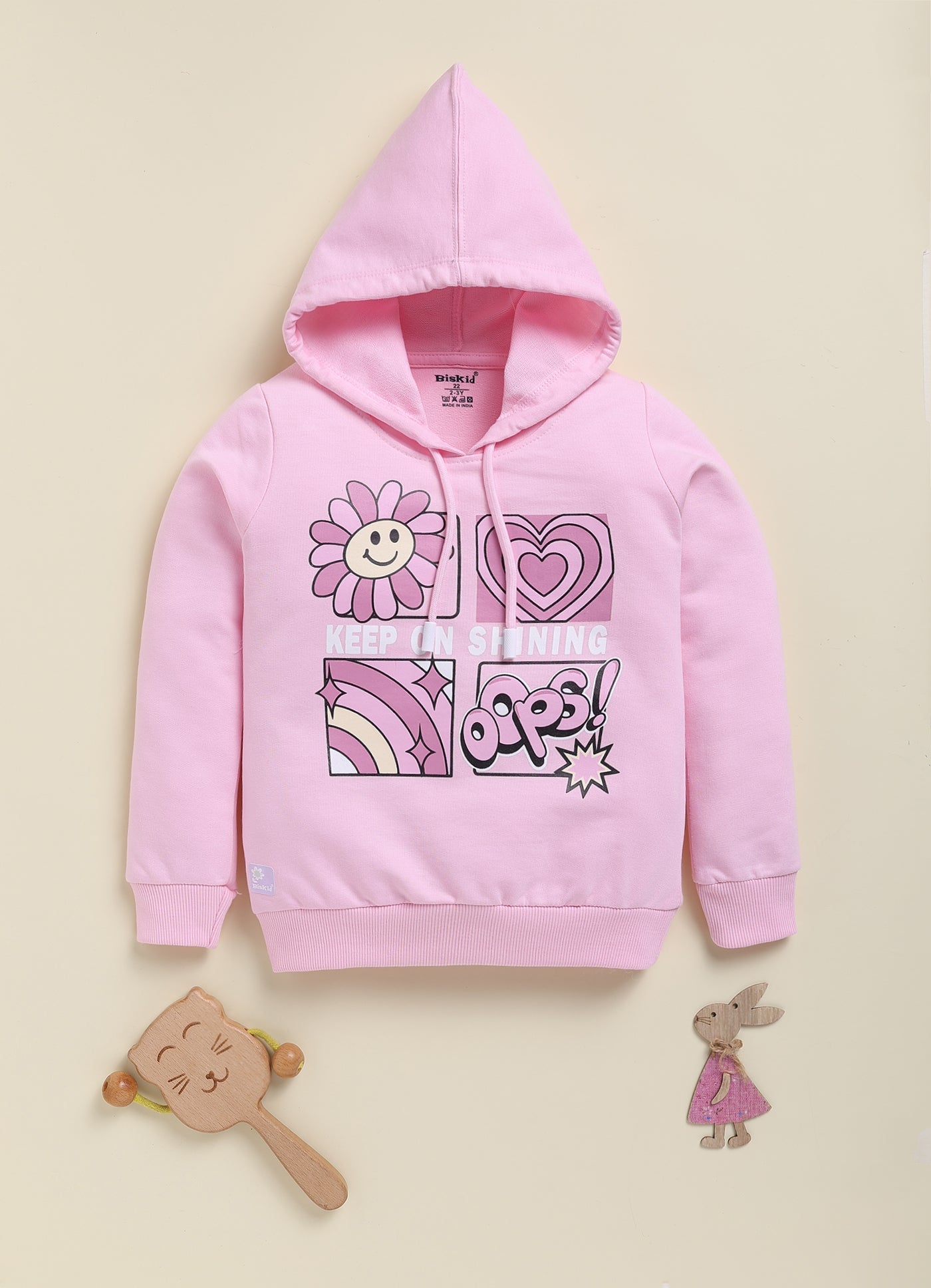 BISKID Cotton Knit Full Sleeves Heart Printed Top