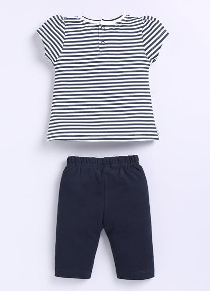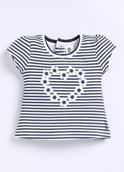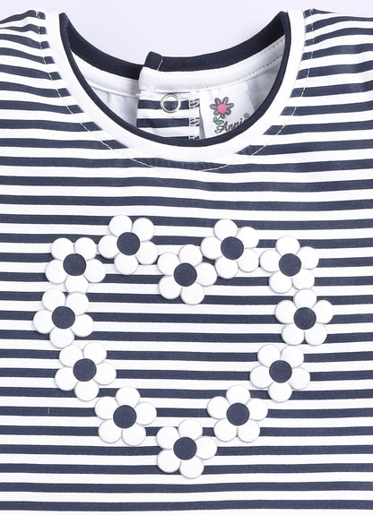Blue Love Shape Floral Stripes Top Capri Set for Girls by Annie