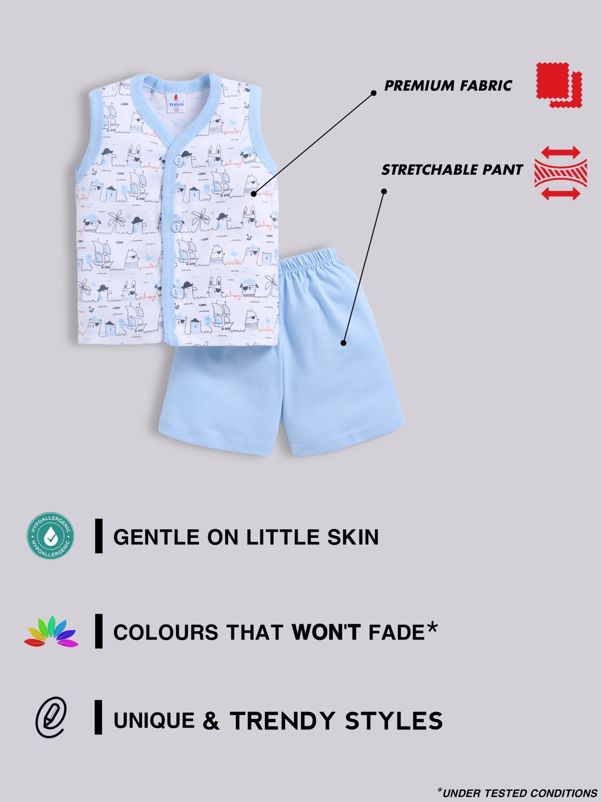 With practical features like elastic waists, snap buttons, and stretchable fabrics, these garments are easy to wear, easy to wash, and perfect for growing kids.