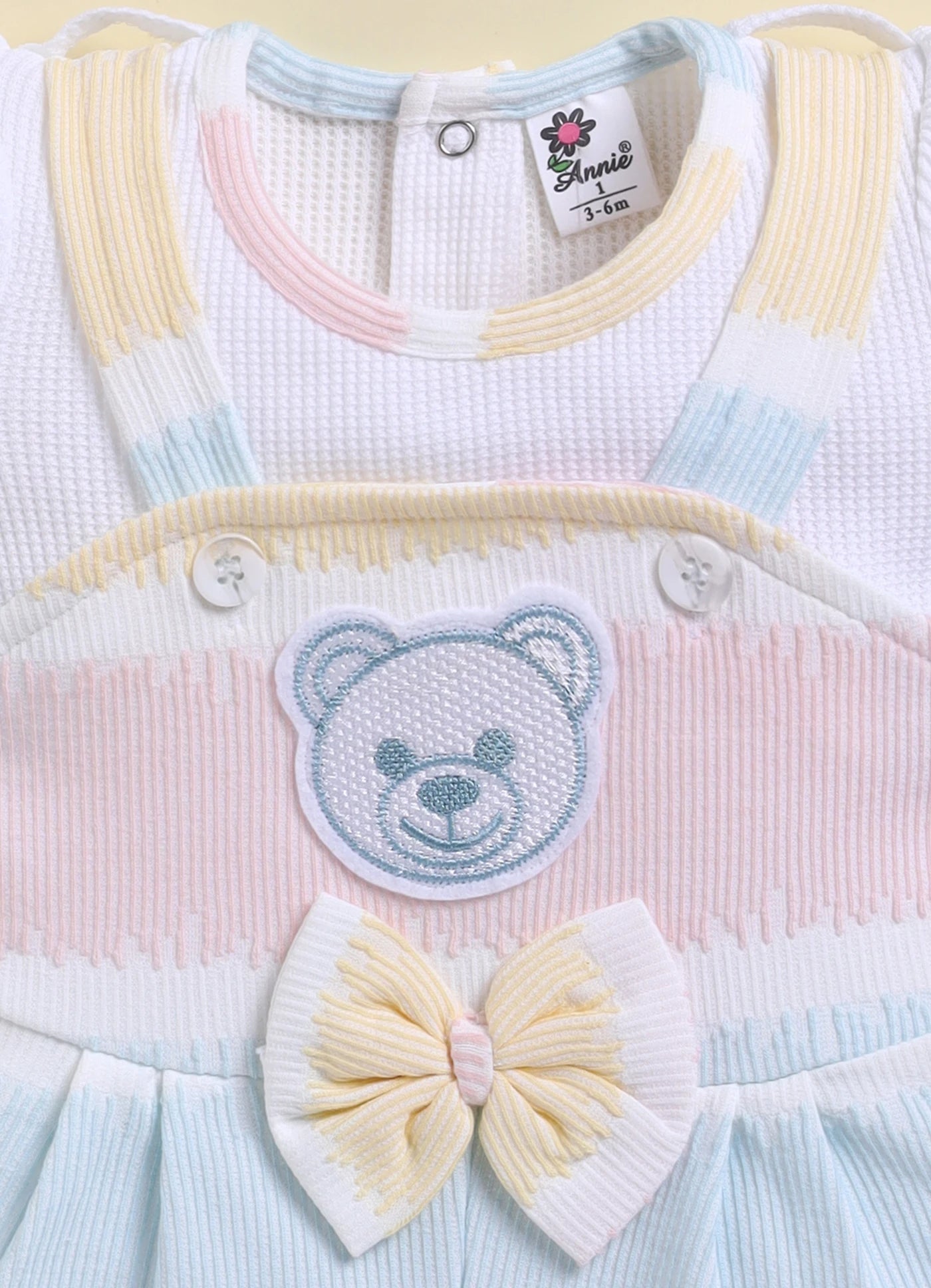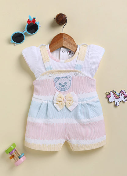 Blue Teddy Face Stripes Jump Suit for Girls by Annie