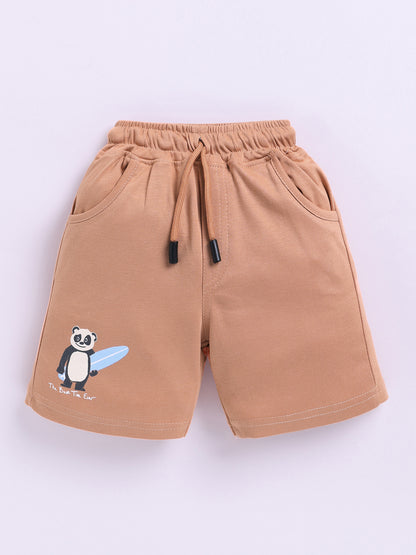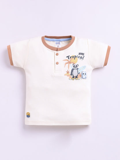 Brown Printed T-Shirt Pant Set for Boys by Uno Kids