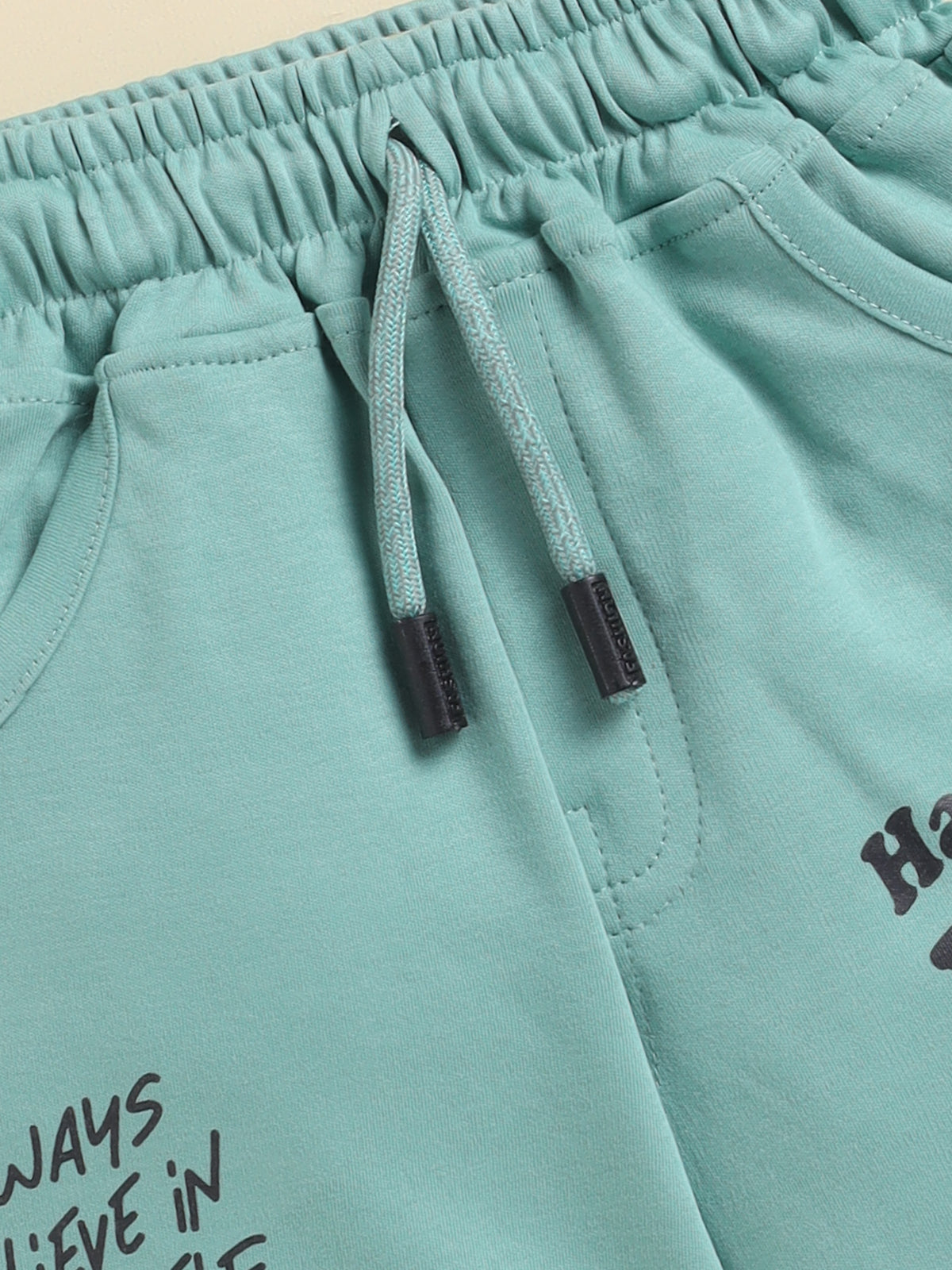 Green Printed T-Shirt Pant Set for Boys by Uno Kids