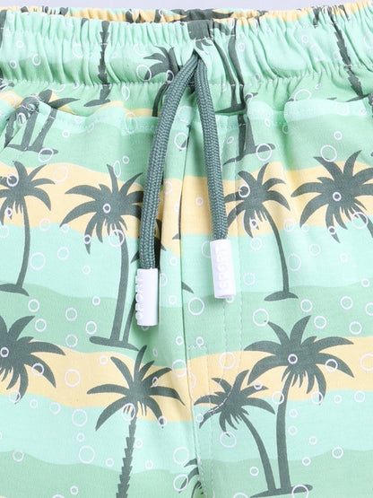 Green Printed T-Shirt Pant Set for Boys by Uno Kids