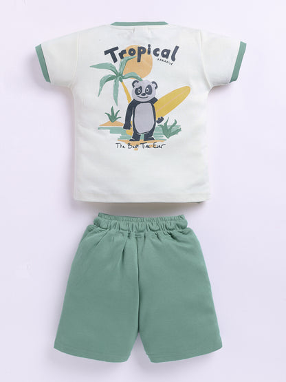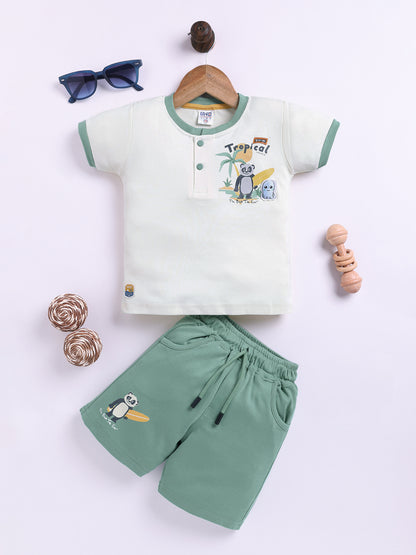 Green Printed T-Shirt Pant Set for Boys by Uno Kids