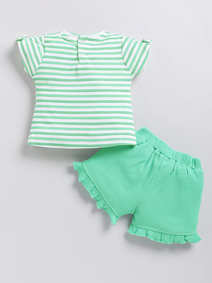 Green Stripes Top Hot Pant Set for Girls by Annie