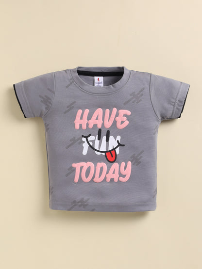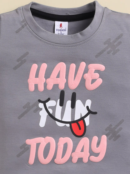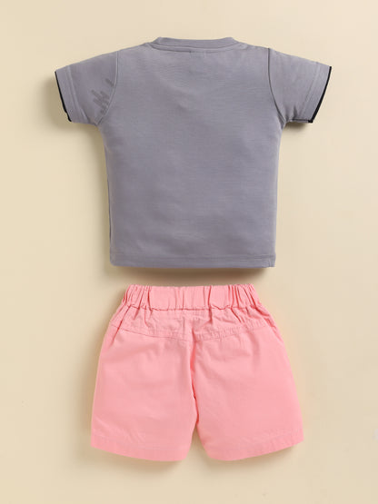 Grey Printed T-Shirt Pant Set for Boys by Todos