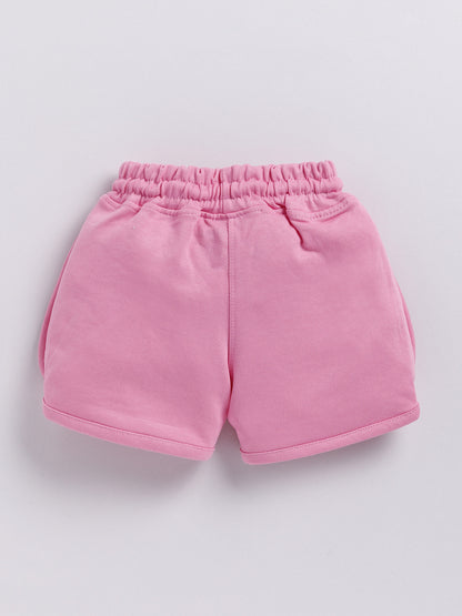 Ink Blue & Pink Micky Solid Shorts for Girls by Biskid