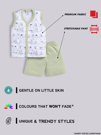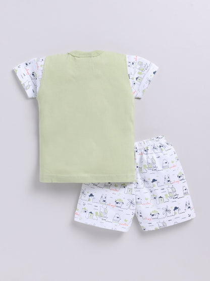 Light Green Printed Double Top Pant for Boys by Todos