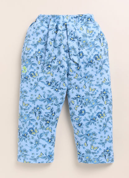 P.Blue Foral Printed Long Pant for Girls by Biskid