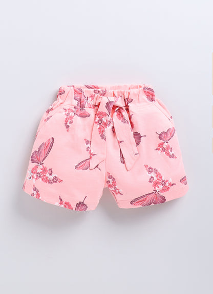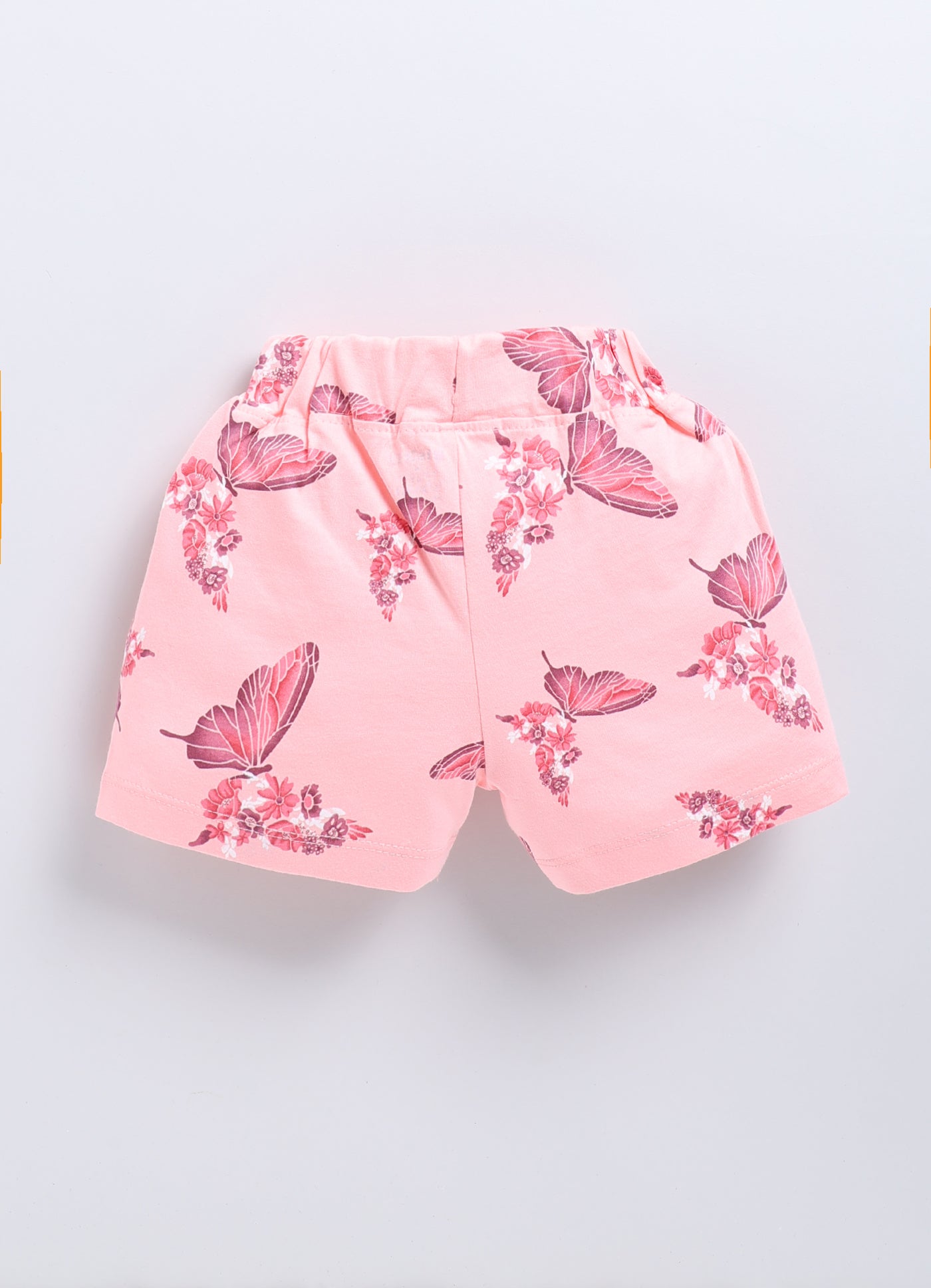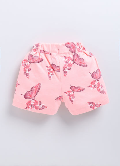 Peach Butterfly Printed Shorts for Girls by Biskid