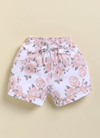 Peach Kitty face Printed Top Hot Pant Set for Girls by Annie