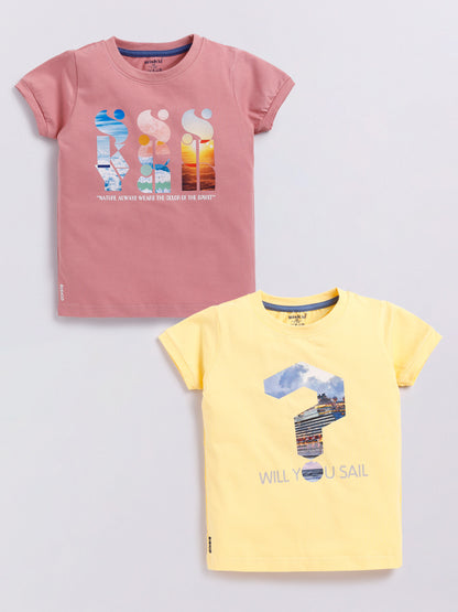 Peach & Yellow Printed T-Shirt for Bo...