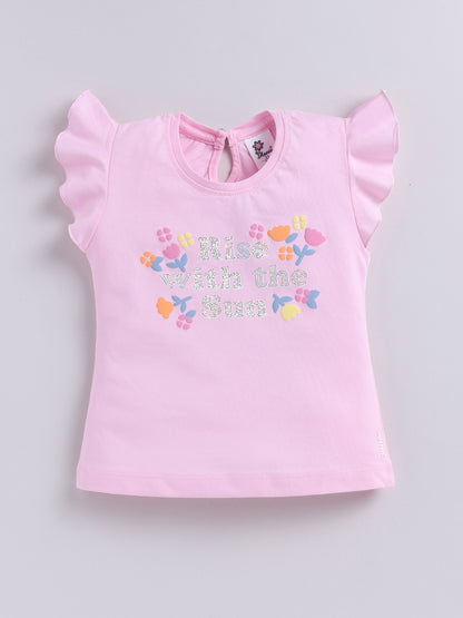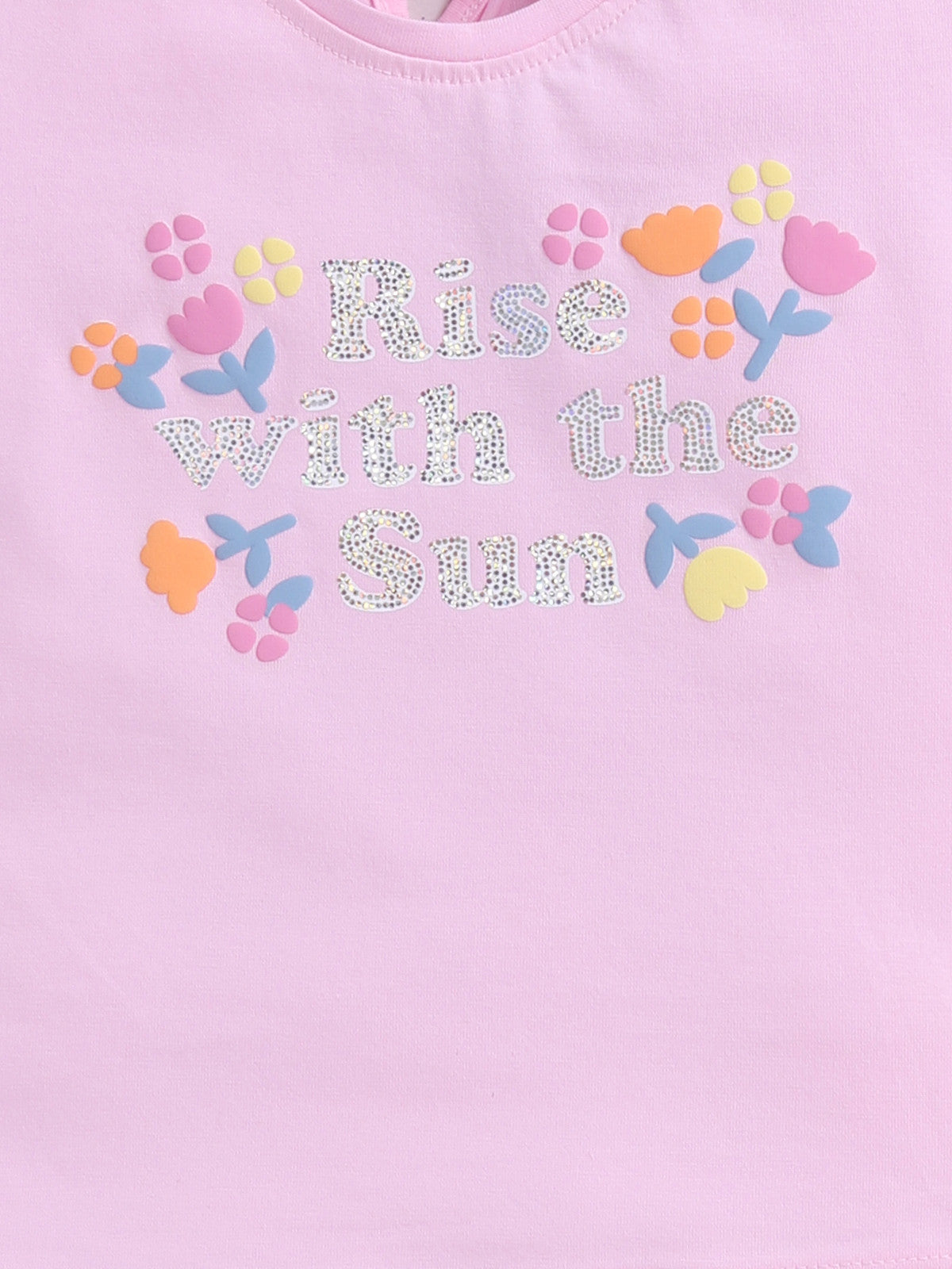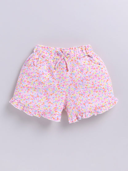 Pink Printed Top Hot Pant Set for Girls by Annie