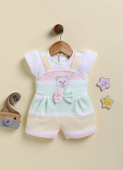 Pink Teddy Face Stripes Jump Suit for Girls by Annie