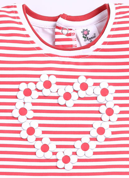Red Love Shape Floral Stripes Top Capri Set for Girls by Annie