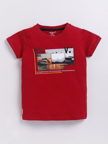 Red Printed T-Shirt for Boys by Biskid