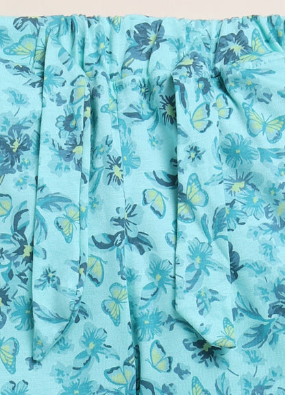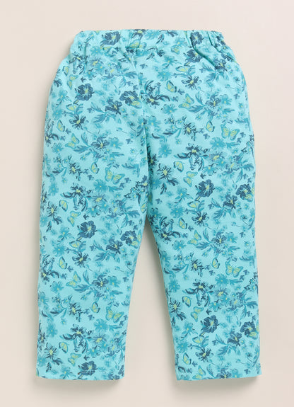 Sea Green Foral Printed Long Pant for Girls by Biskid