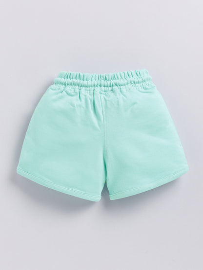 Sea Green Micky Solid Shorts for Girls by Biskid