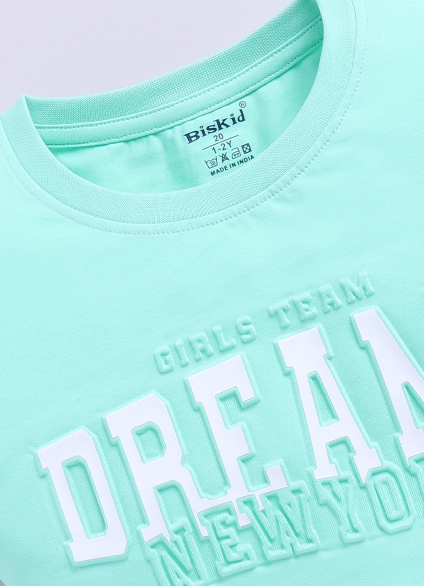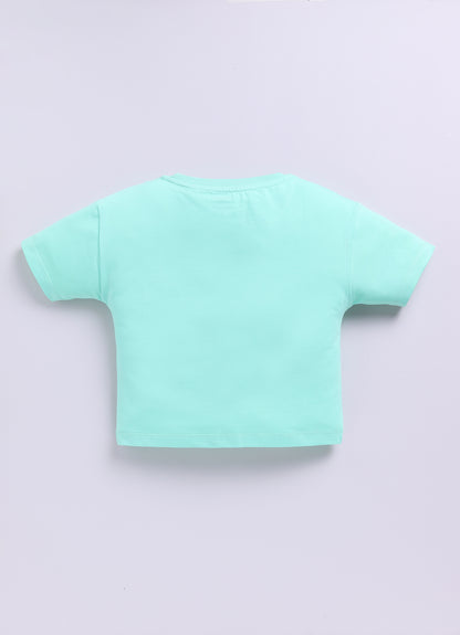 Sea Green Printed Drop Shoulder Top for Girls by Biskid