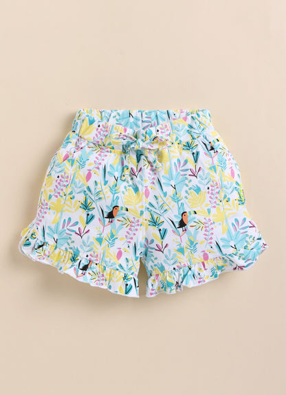 Sky Blue Foral Printed Shorts for Gi...