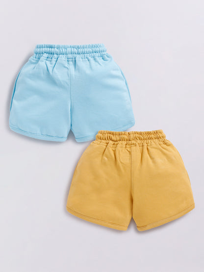 Sky Blue & Gold Micky Solid Shorts for Girls by Biskid