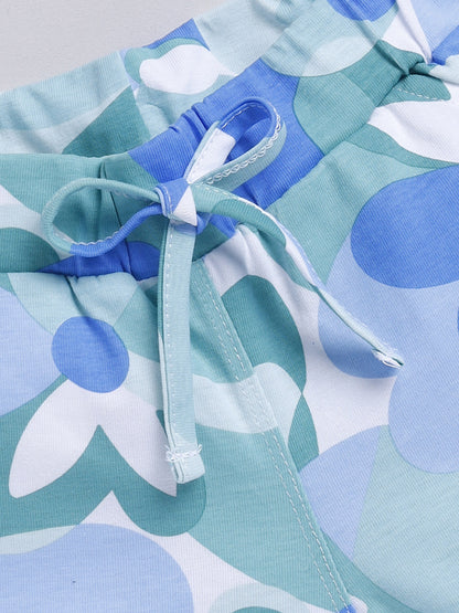 White-Blue Foral Printed Shorts for Girls by Biskid