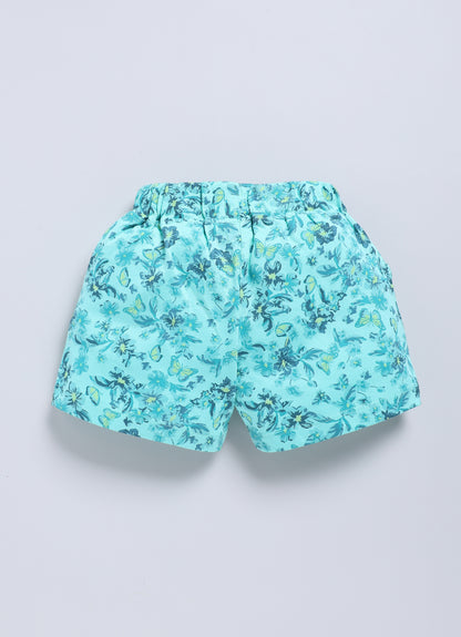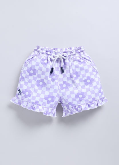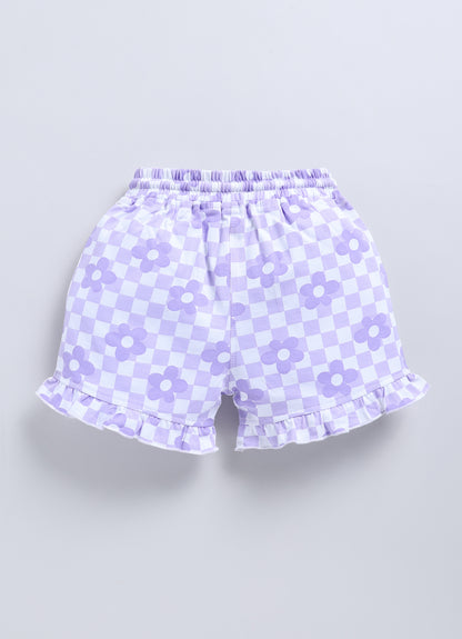 White Lavender & Sea Green Printed Shorts for Girls by Biskid