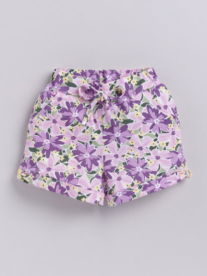 White Purple & White Brown Foral & Leaf Printed Shorts for Girls by Biskid