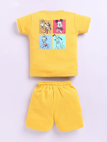 Yellow Micky Printed T-Shirt Pant Set for Boys by Uno Kids